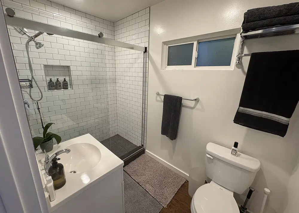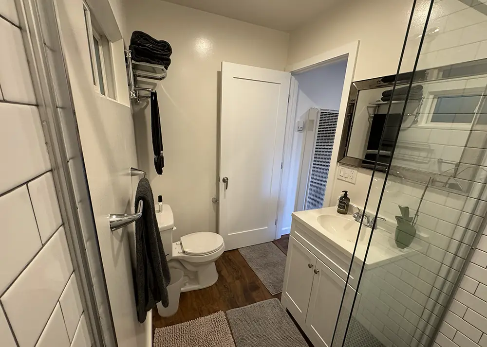 Our private, fully furnished, detached guesthouse includes everything you need: complete kitchen, high-speed WiFi, access to a shared laundry, free street parking, and a prime West LA location just a short walk from the Metro, and a short drive to Santa Monica. Because why settle for boring temporary housing when you could have a farm-fresh breakfast, aquatic therapy, and the best four-legged concierge team in Los Angeles?